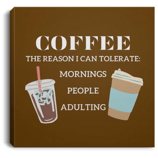 Coffee is the Reason I Can Tolerate Mornings People Adulting | Square Canvas | Various sizes and colors
