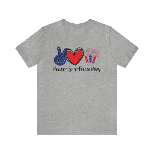 Peace Love Fireworks | Independence Day | Jersey Short Sleeve Tee