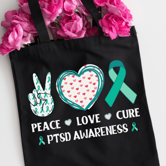 PTSD Awareness | Peace Love Cure | Canvas Tote Bag