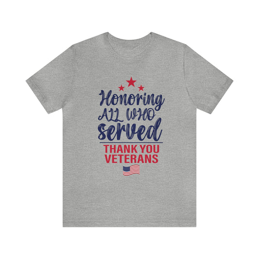 Honoring All Who Served | Thank You Veterans | Jersey Short Sleeve Tee