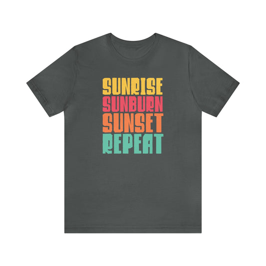 Sunrise Sunburn Sunset Repeat | Vacation | Summer | Jersey Short Sleeve Tee