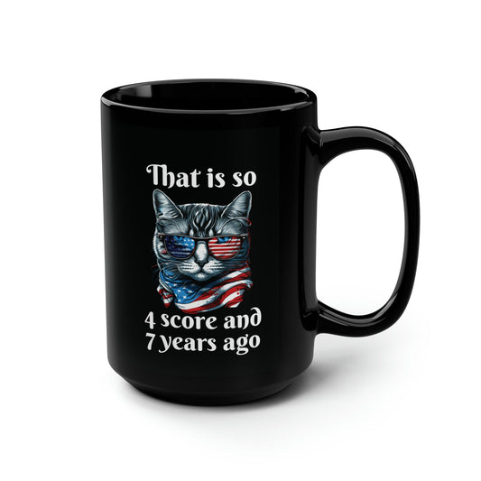 That is So 4 Score and 7 Years Ago | Cat | 15 oz. Black Mug