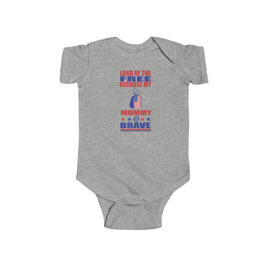 Land of the Free Because My Mommy is Brave | Military Family | Infant Jersey Bodysuit