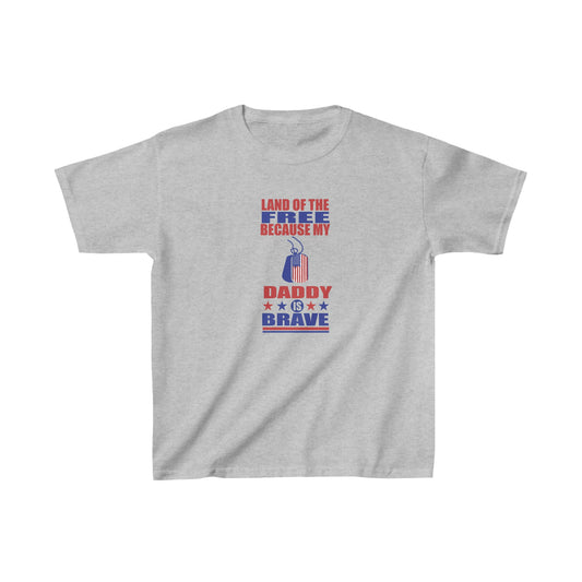Land of the Free Because My Daddy is Brave | Military Family | Kids Heavy Cotton™ Tee