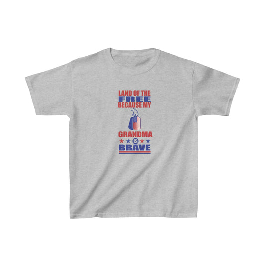 Land of the Free Because My Grandma is Brave | Military Family | Kids Heavy Cotton™ Tee