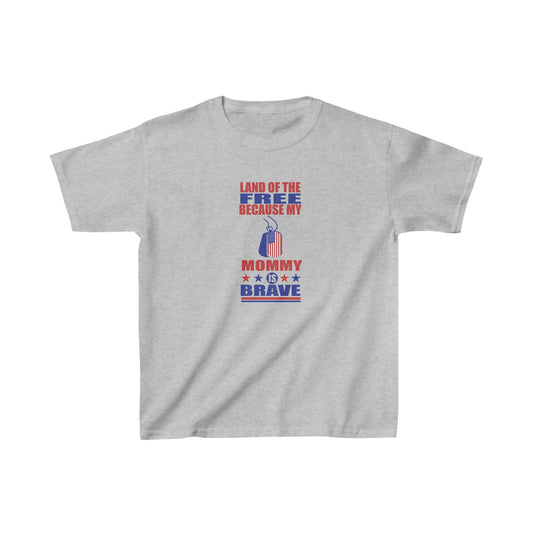 Land of the Free Because My Mommy is Brave | Military Family |Kids Heavy Cotton™ Tee