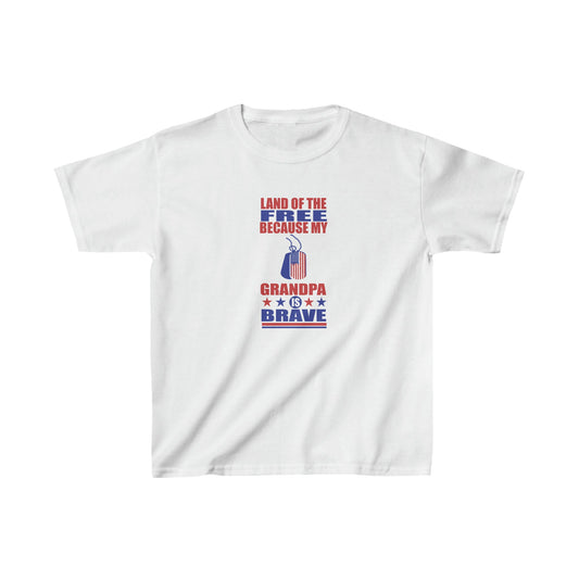 Land of the Free Because My Grandpa is Brave | Military Family | Kids Heavy Cotton™ Tee