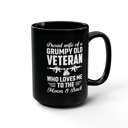 Proud Wife of a Grumpy Old Veteran | 15 oz. Black Mug